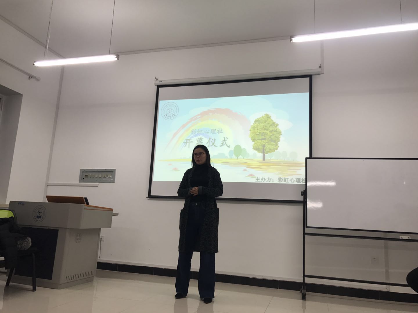 12月6日晚,大学生心理健康教育中心彩虹心理社启动仪式在双创211顺利举行。大学生心理健康教育中心主任戴兴玉、外国语学院党委副书记刘海燕、心理中心教研室主任王晓宁出席了此次大会,大会由心理中心教师唐嵩潇主持。