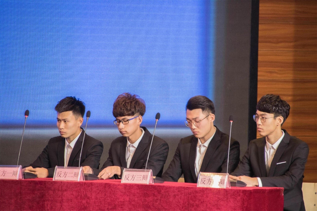 下半场:另外两组选手也就这一辩题展开了激烈的辩论,双方所举之例各有令人信服之处。接下来的攻辩环节,双方辩手都使出浑身解数。一方主攻,一方主防;攻者刁钻,防者从容。每每辩到精彩之处,总能搏得场下观众阵阵掌声。双方辩手唇枪舌战,可谓是针尖对麦芒,一番你来我往,再次将比赛气氛推向了高潮。