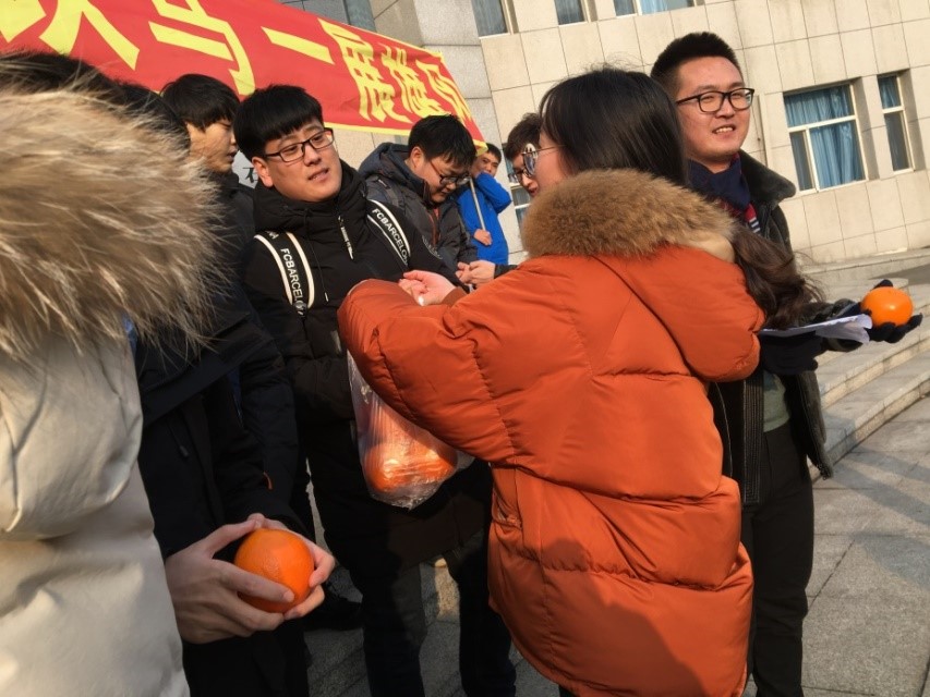 下午一点,逸夫楼门前,“征战”队伍集结完毕,整齐的私家车队排成一条长龙整装待发,出征仪式正式开始。午后温暖的阳光照在考生的脸上一直暖进学生的心里。学生工作办公室精心为考生送上了橙子,希望他们“心想事(橙)成、马到成(橙)功。